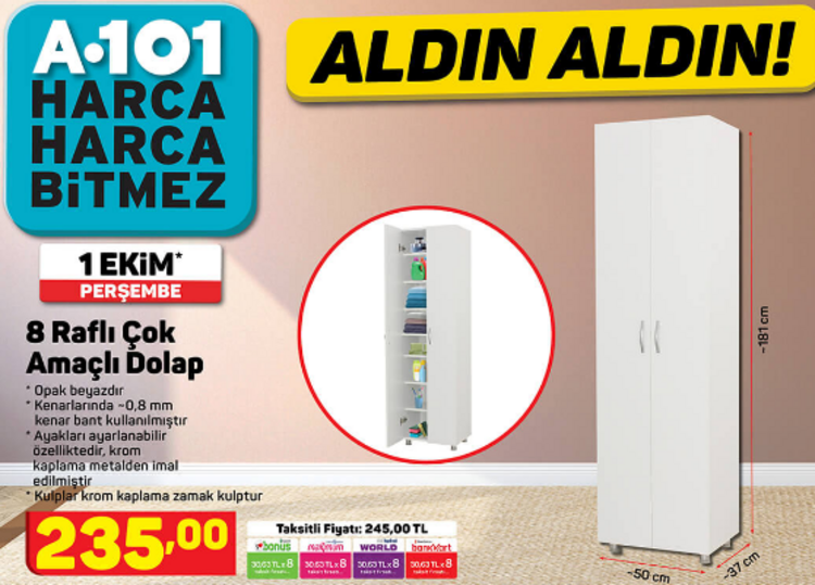 8 raflı çok amaçlı dolap en uygun fiyat seçeneği, 150 tl ve üzeri alışverişlerde ücretsiz kargo fırsatı ve daha birçok ürünü a101'de! Merhabalar izmirin dul ve evli çiftlerin. Alyan tapalarını yan ve üst tablalardaki vida deliklerine takıyoruz. 13 şubat 2020 a101 kataloğu tüm kampanya detayları sayfamızda… şık tasarımı ile bu hafta yer alan 8 raflı çok amaçlı dolap 235 tl.